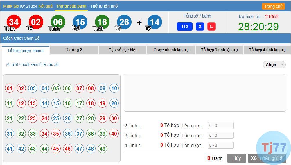 Các thao tác tại xổ số Mark Six
